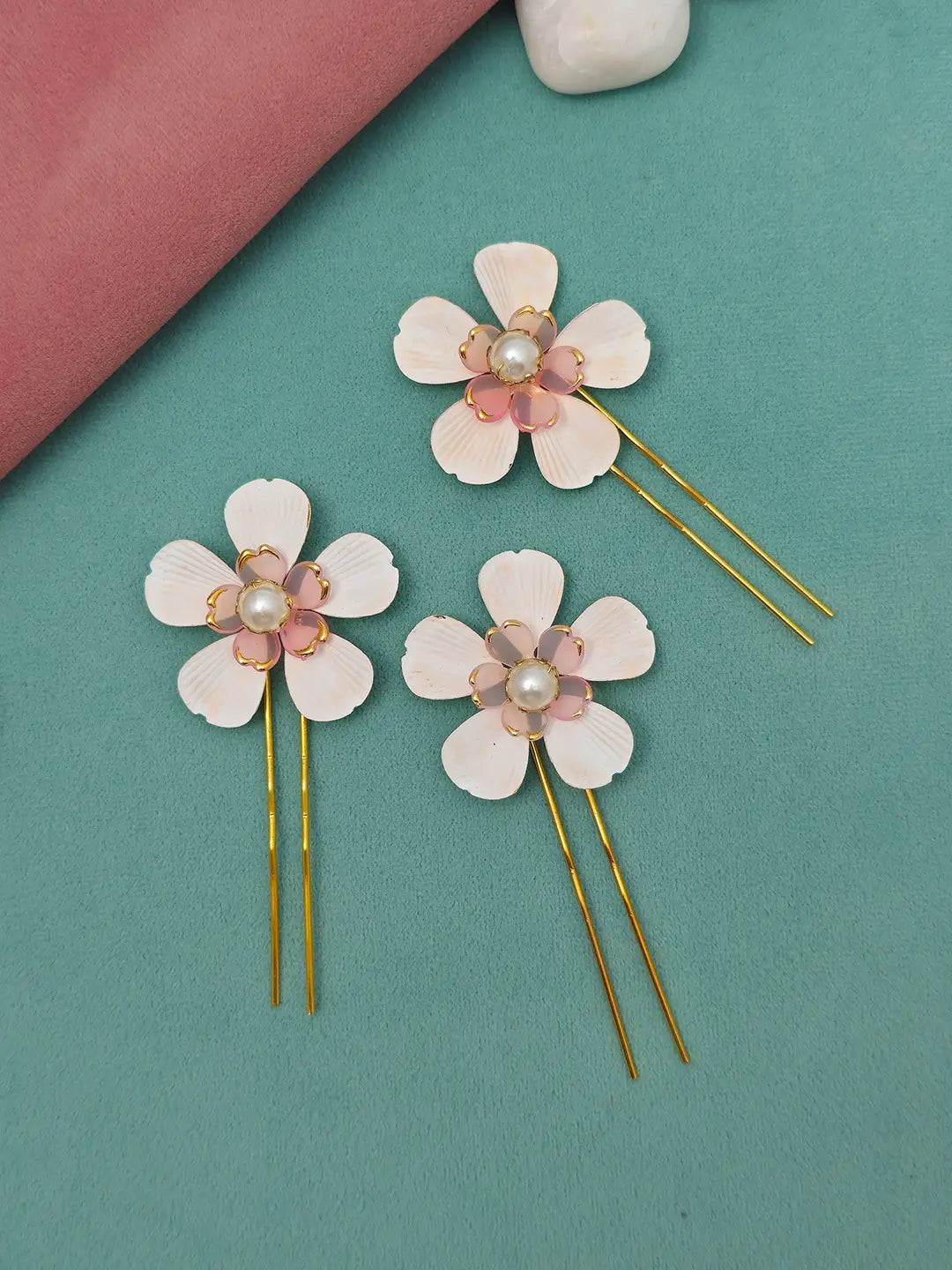 Add soft floral elegance to your hairstyle with this petal pearl flower hair pin set. Perfect for brides, bridesmaids or women attending weddings, receptions, casual parties or pre-wedding photoshoots.