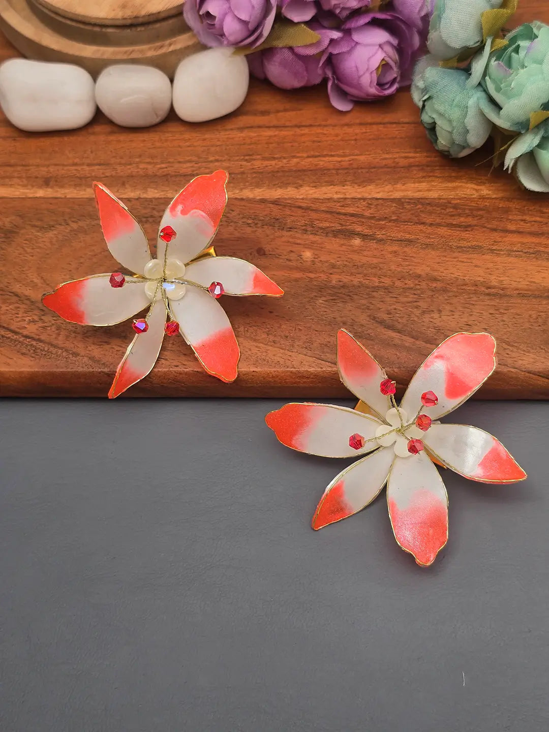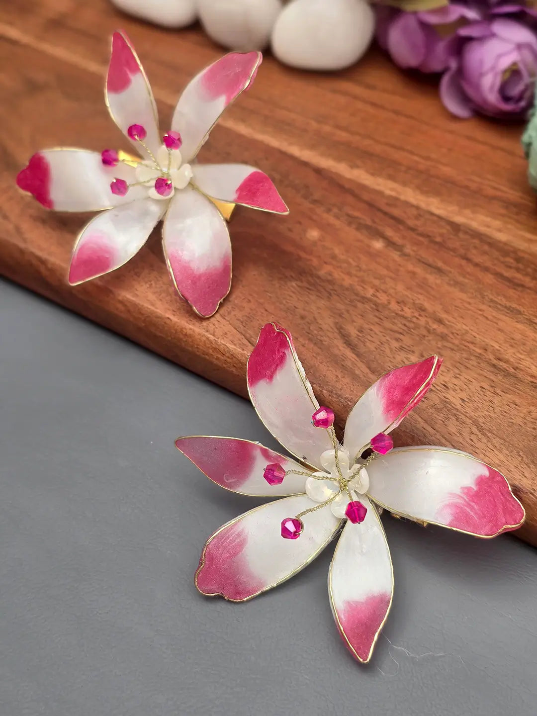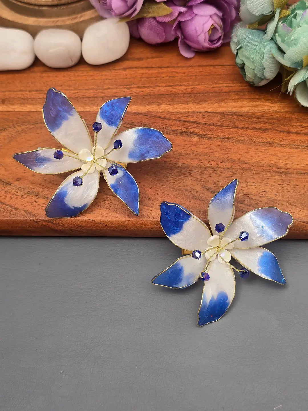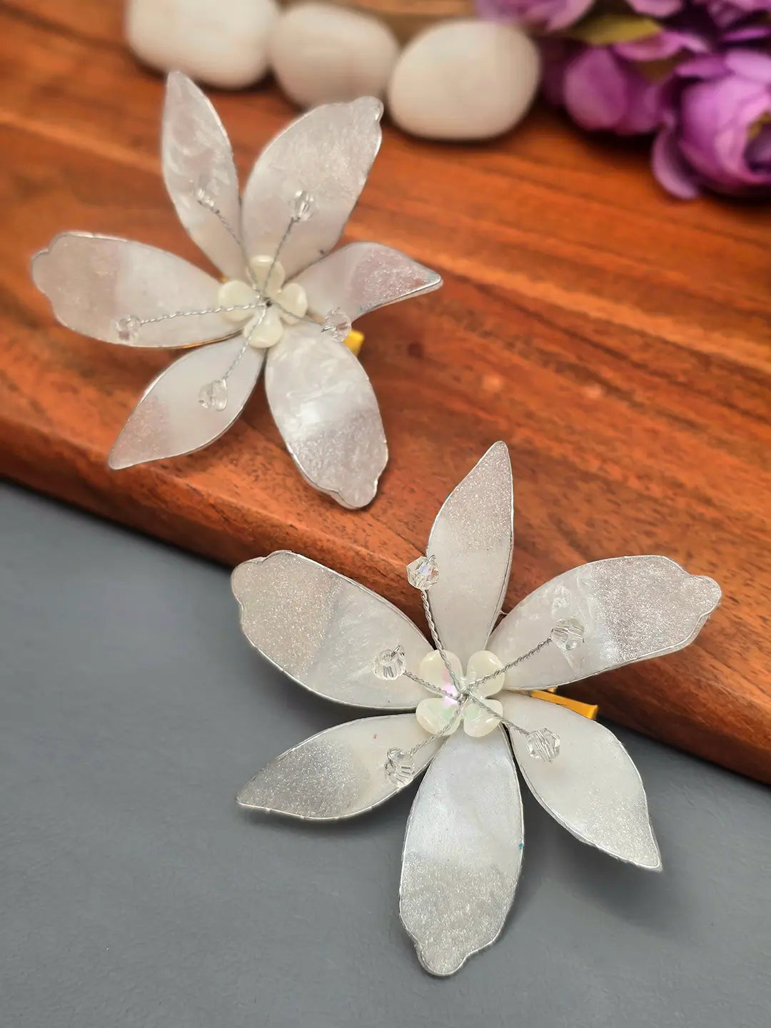 This elegant resin hair pin is designed in the shape of a lily flower, with a glossy blue-white finish and delicate bead accents. A perfect pick for festive looks, weddings, or everyday floral charm.