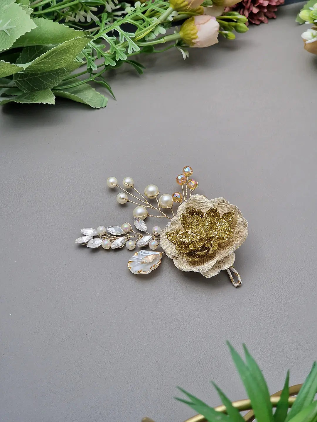 This Rose Shimmering Rosebud Hair Clip adds a soft romantic touch to your hairstyle.perfect clip for low buns, side-swept styles, or open hair.