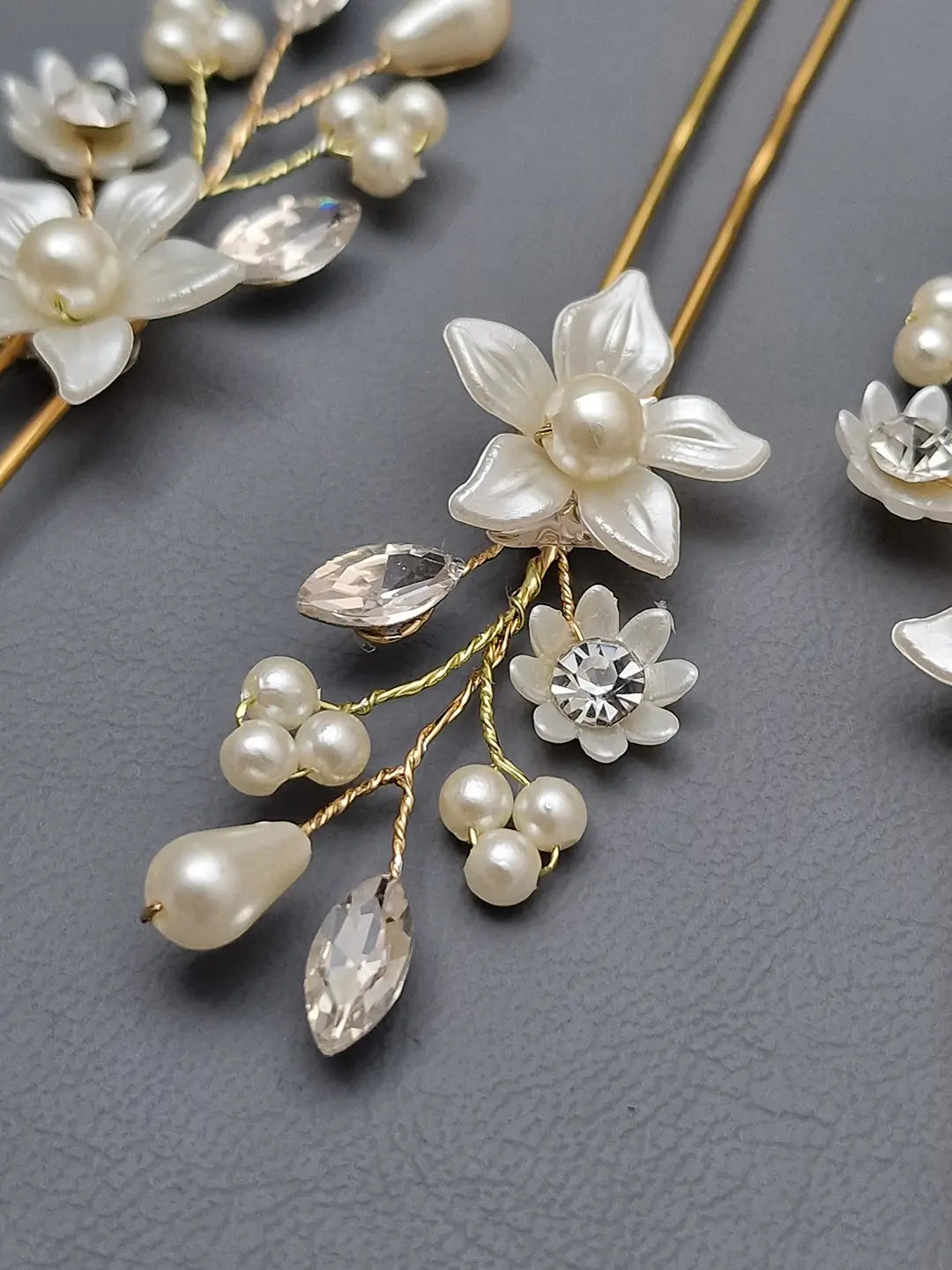 Complete your hairstyle with these elegant pearl floral hair pin for women – perfect for bridal buns, festive braids, or graceful party looks.