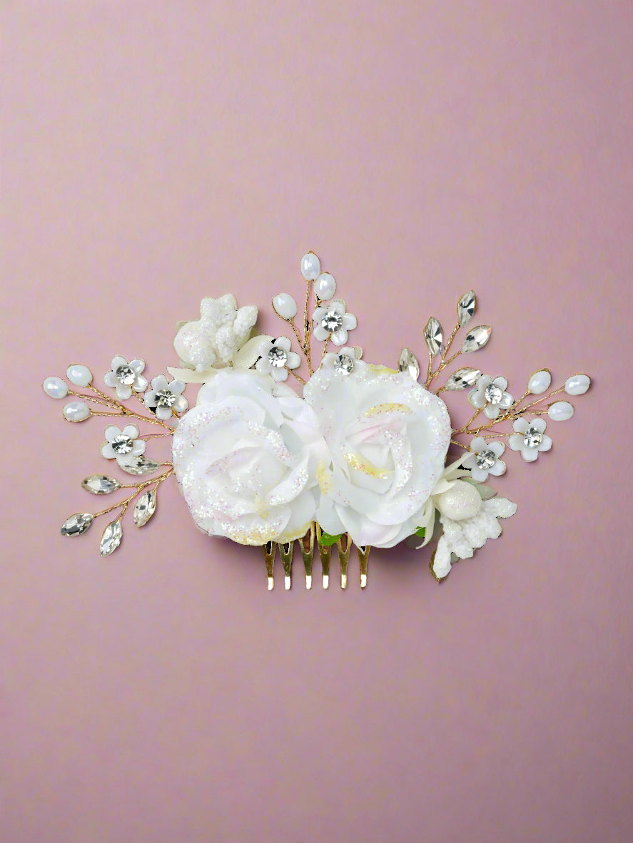 Step into your bridal moment with this shimmer rose crown hair comb.Best for brides, bridesmaids, or women attending weddings, receptions, engagement shoots, or formal celebrations.