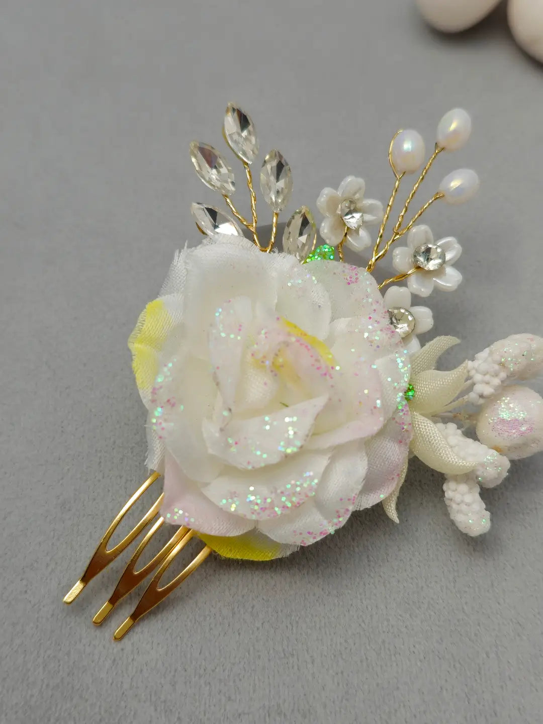 Add bridal glow to your hairstyle with this sparkle rose bloom Small Flower with stones hair comb.